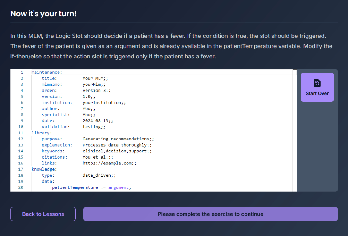 On August 26, 2024, Medexter launched the site ardensyntax.com featuring several interactive Arden Syntax tutorials. The site offers the community and potential ArdenSuite customers the possibility to learn all about Medical Logic Modules, which are the building blocks of the Arden Syntax. Furthermore, interested parties can use the Arden Syntax sandbox to learn to write in Arden Syntax themselves. The site provides clincially relevant examples to get you started.